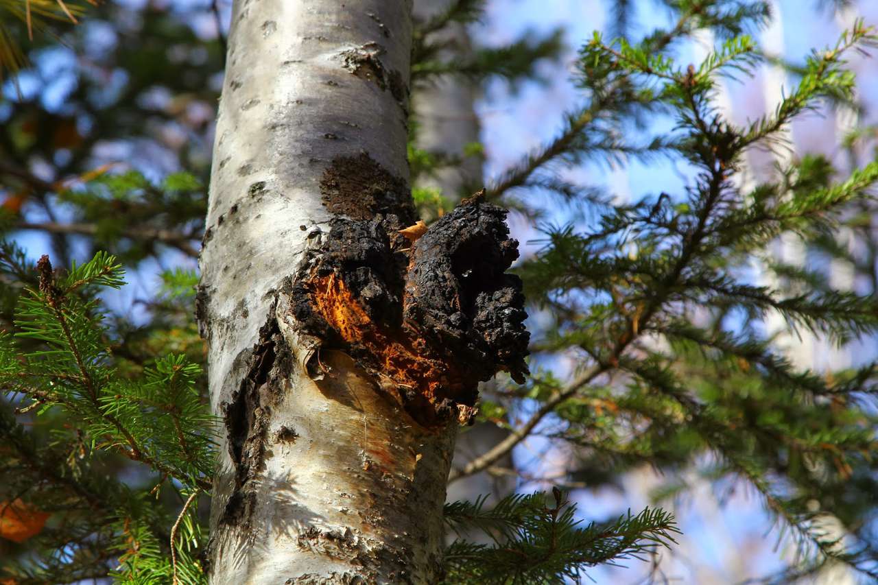 Чага. Другие названия — инонотус скошенный, черный березовый гриб, трутовик скошенный, косотрубчатый, косой.