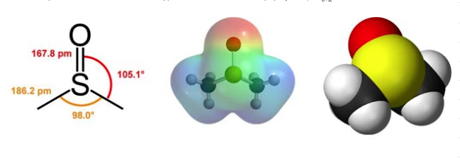 При смешивании с водой происходит заметное разогревание. Реагирует с иодистым метилом, образуя ион сульфоксония, способный к взаимодействию с гидридом натрия.