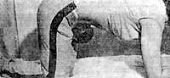 Для этой цели берут серебряную монету или кусочек пробки, обертывают во влажную полотняную тряпочку и накладывают на пупок, умеренно вдавливая опухоль. Все это укрепляется наложенными крест-накрест полосками липкого пластыря. Затем накладывают кусочек плотной бумаги и укрепляют все бинтом. При перемене повязки надо каждый раз смачивать больное место прохладной водой при помощи губки».