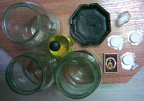 Для этого дела надо: три литровые банки (сухие, проверенные края на щербатость), зажигалка противоветровая (в крайнем случае - спички), пепельница, кусок ватки, тройной одеколон, три таблетки сухого спирта, три кусочка бумажки серебристой от пачки сигарет (размер – чуть больше таблетки, но меньше горлышка банки). Постель застилаем простынью которую не жалко – на всякий случай.