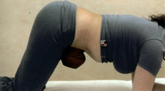 Можно эту процедуру выполнить в воде. Следует лечь в ванну так, чтобы грудь была над водой, и с большим старанием приподнимать всё, что опустилось, начиная с мочевого пузыря. А можно, не вставая с постели, лечь поперёк и сделать «полуберёзку», опираясь на стену. По возможности подвиньтесь ещё ближе к стене. Теперь область таза приподнята, а руки свободны для массажа. Поднимайте всё, что опустилось за долгие годы.