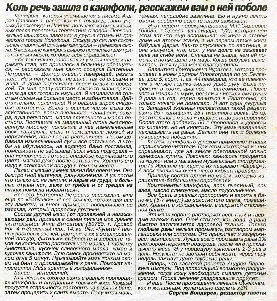 Посылаю вам несколько рецептов былой старины, которыми пользовались хорошо знакомые мне люди, моя мама и я сам. Эти рецепты испытаны временем, эффективны, возможно, кому-то пригодятся.