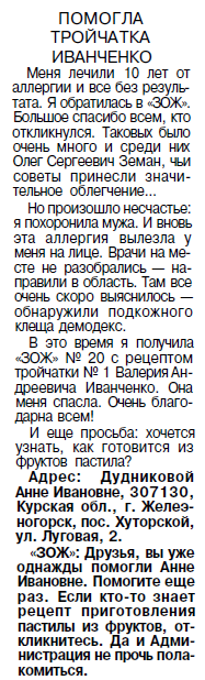 Дорогая моя газеточка! Счастлива, что ты есть! Вся моя семья, все родные лечимся с твоей помощью.